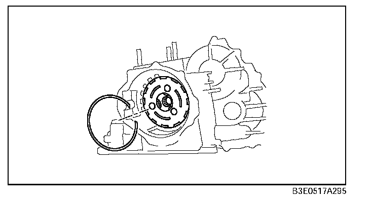 19. Rotate the engine stand so that the end cover faces upward, and verify that the snap ring is installed accurately.