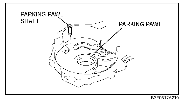 31. Install the packing pawl and parking pawl shaft to the transaxle case.