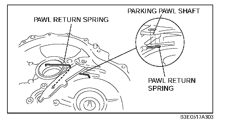 32. Install the pawl return spring to the parking pawl and parking pawl shaft.