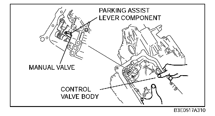 Caution: Make sure that the head of the manual valve and the parking rod are assembled properly. If they are not, the ranges cannot be changed.