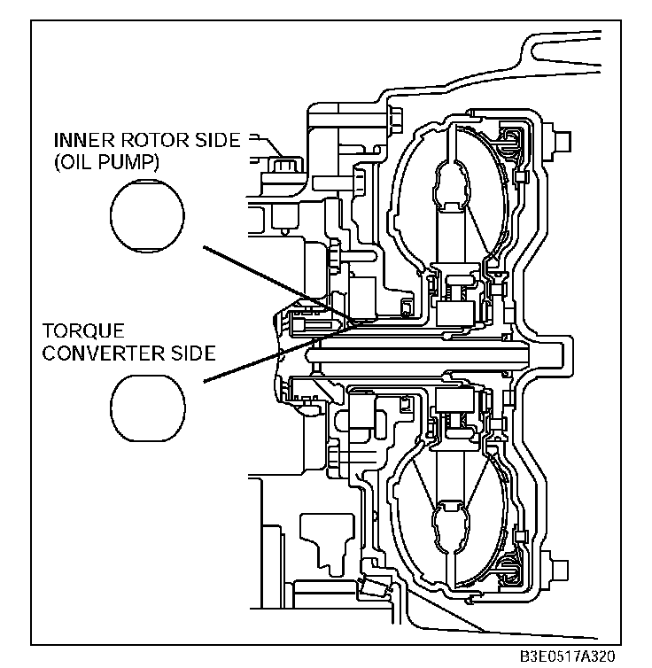 70. Install the torque converter by aligning its gap to the oil pump inner rotor gap as shown in the figure.