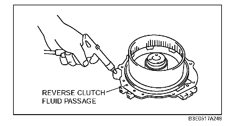 2. Remove the reverse piston from the 2- 4 brake drum by applying compressed air through the fluid passage.