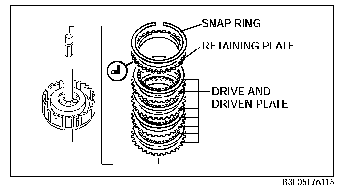 9) Install the selected snap ring and perform steps (2) to (7) again. Verify that the calculated value satisfies the clearance specification.