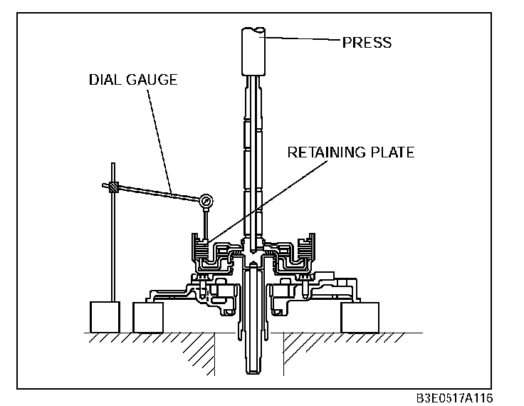 5) Release the compressed air and read the dial gauge when the forward clutch piston is not operating.