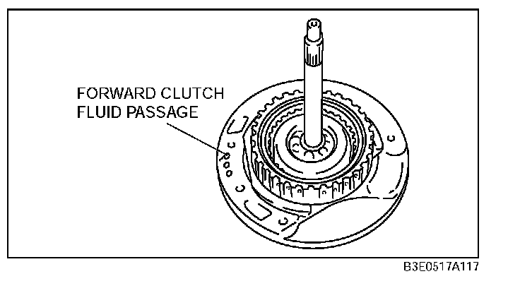 2) Inspect the forward clutch operation by applying compressed air as shown.
