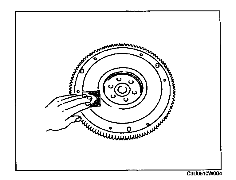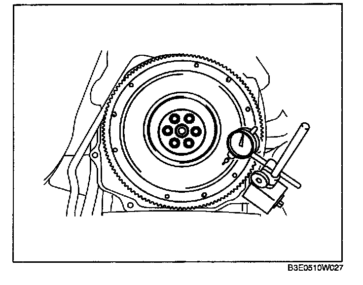 ^ Inspect the runout of the surface that contacts the clutch disc with the flywheel installed to the crankshaft.