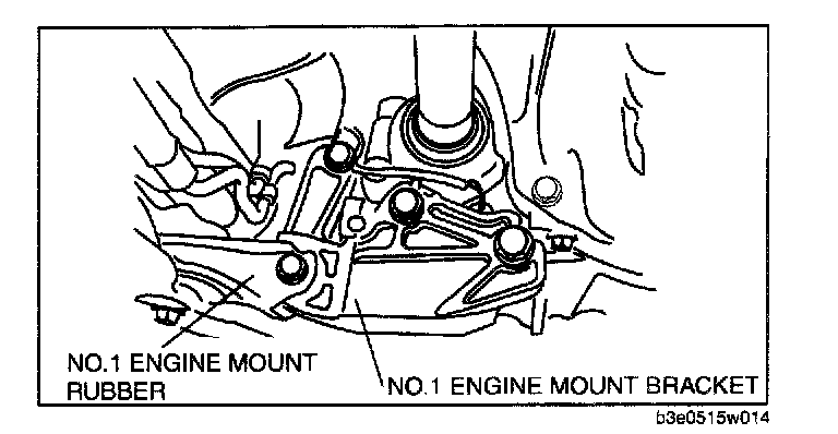2. Remove the No.1 engine mount rubber and No.1 engine mount bracket.