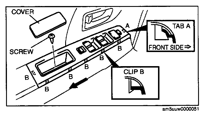 5. Detach tab A by pulling it in the direction of the arrow, and remove the switch panel from the front door trim.