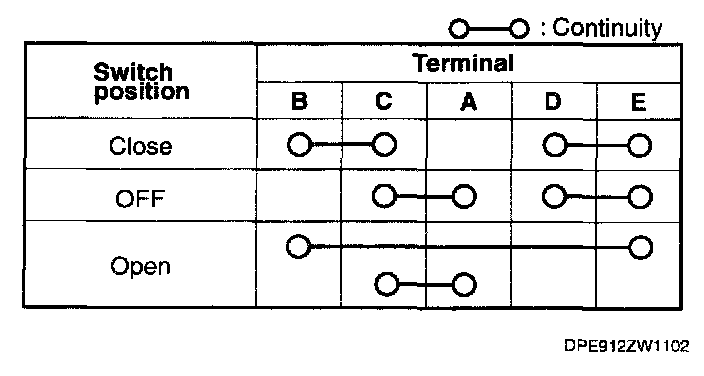If not as indicated in the table, replace the power window subswitch.
