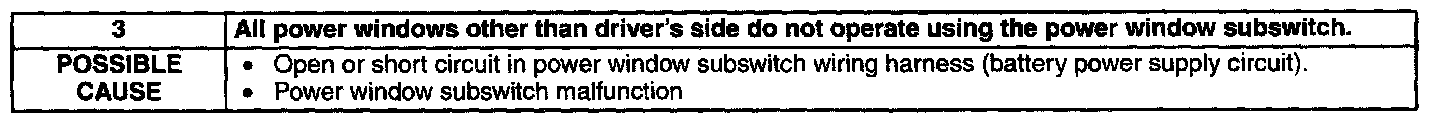 No.3 All Power Windows Other Than Driver's Side Do Not Operate Using the Power Window Subswitch[Power Window System]