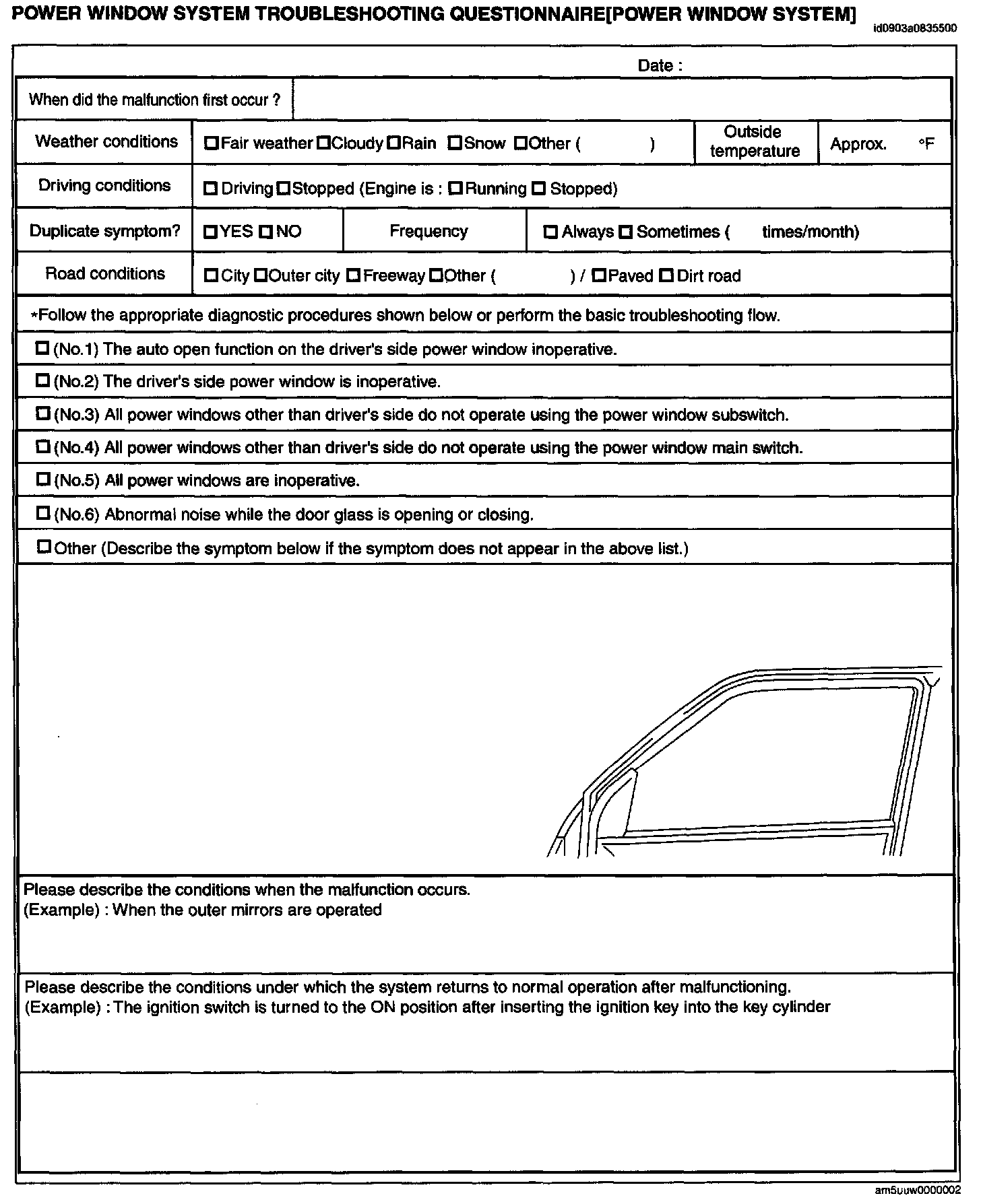 Power Window System Troubleshooting Questionnaire(Power Window System):
