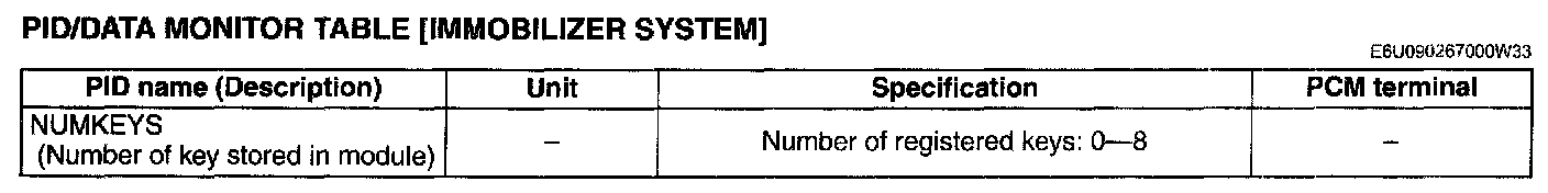 PID/DATA Monitor Table [Immobilizer System]: