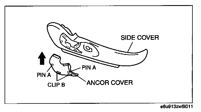 2. Lift the anchor cover up in the direction of the arrow and remove it from the side cover.