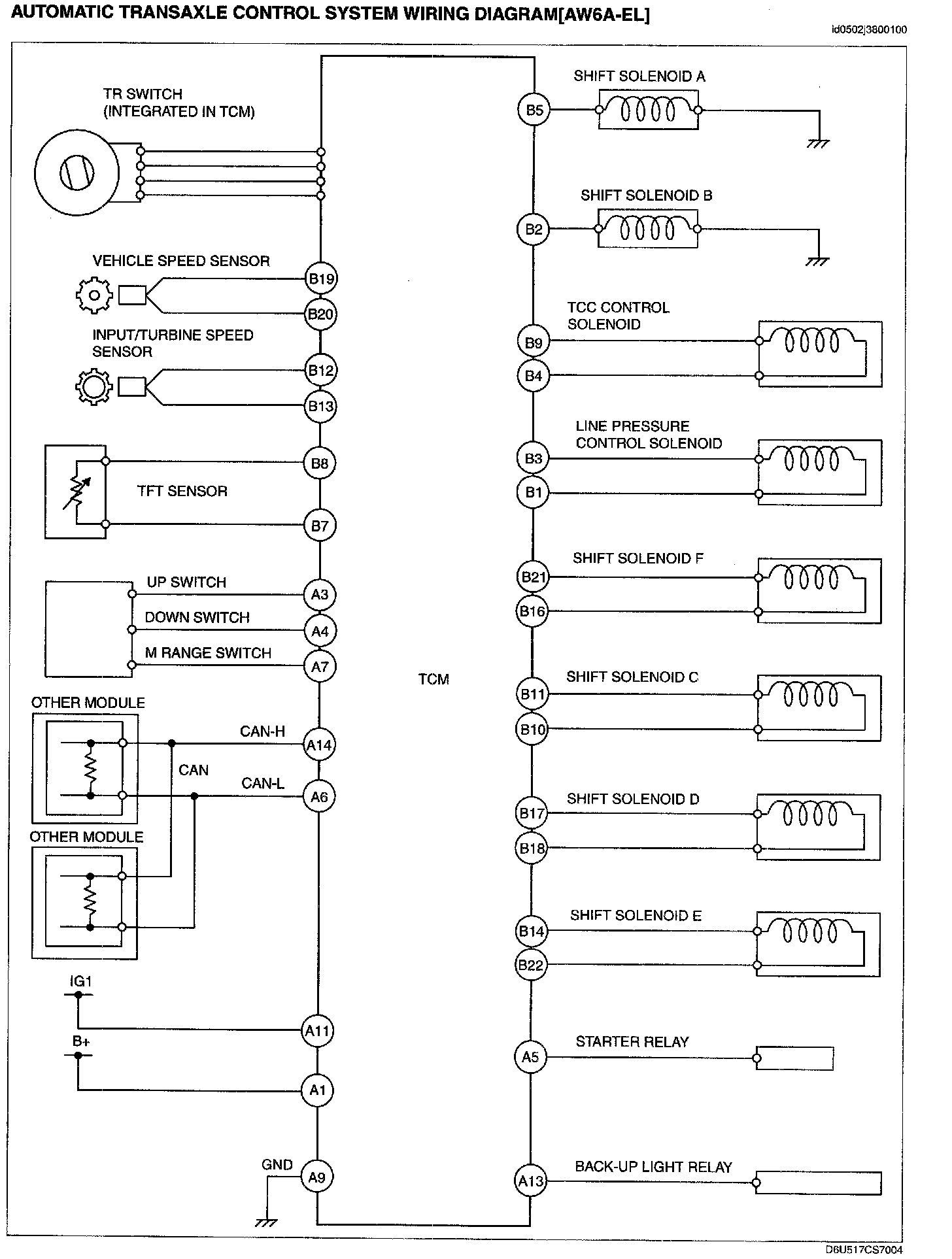 Automatic Transaxle Control System Wiring Diagram [AW6A-EL]