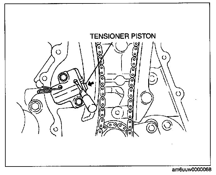 3. Remove the retaining wire or paper clip from the auto tensioner to apply tension to the timing chain.