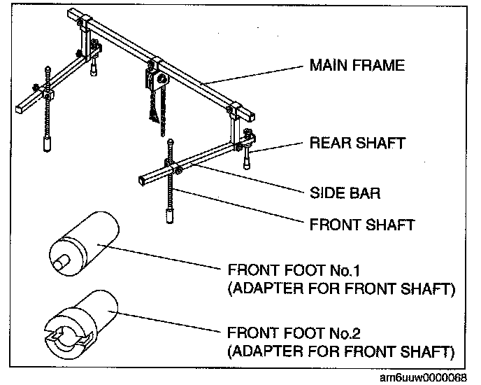 (3) Install the left/right front shaft of the SST with front foot No.2 to the bolt as shown in the figure.