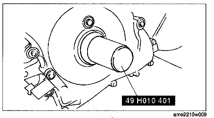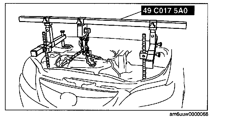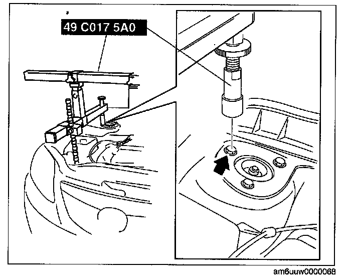 (1) Install the right rear shaft of the SST to the bolt of the right shock absorber as shown in the figure.