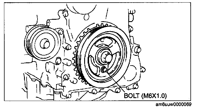 2. Remove the oil pump sprocket, and then remove the crankshaft pulley and crankshaft pulley lock bolt.