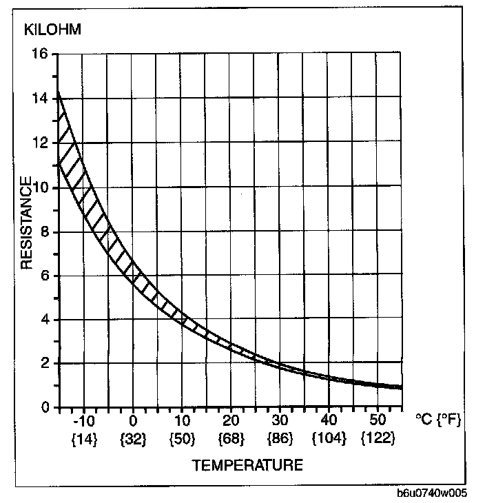 - If the resistance is not as shown in the graph, replace the passenger compartment temperature sensor.