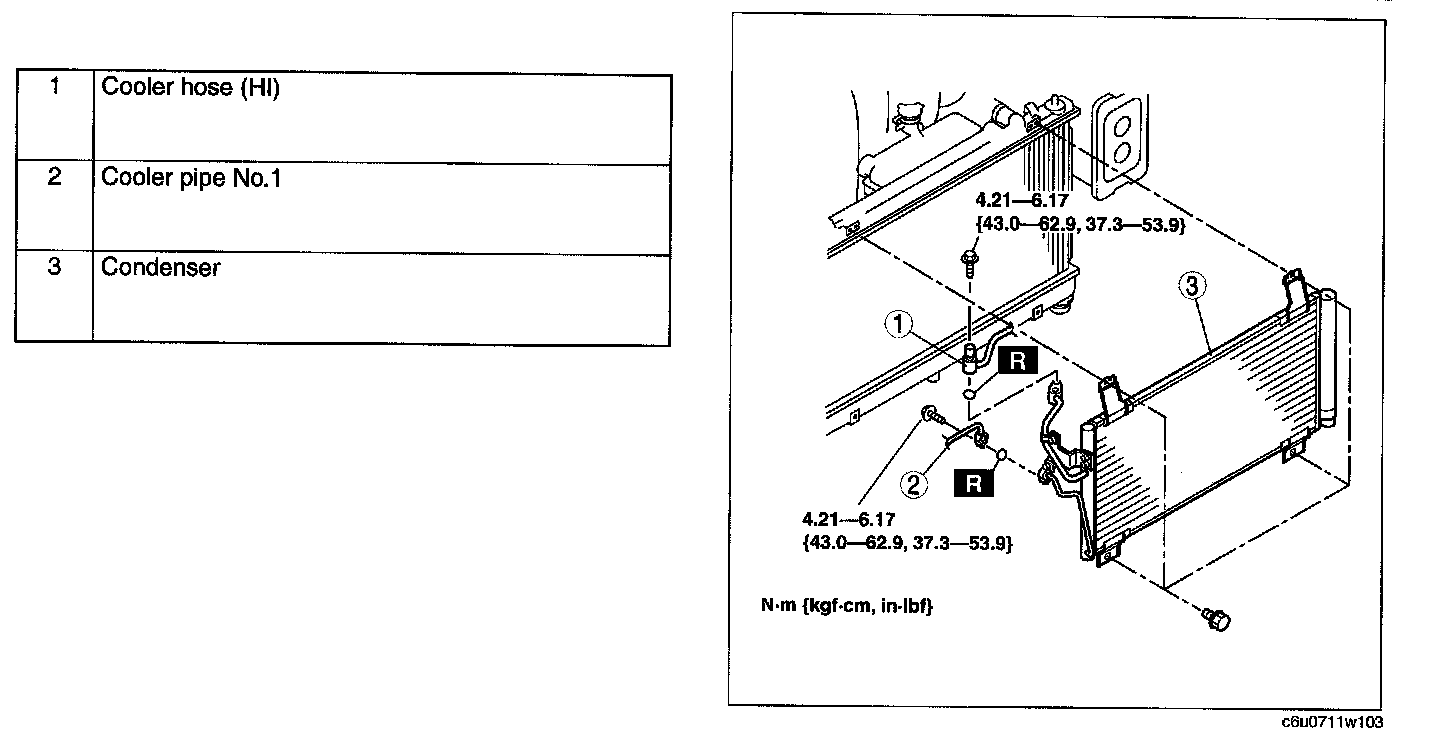 4. Remove in the order indicated in the table. Do not allow compressor oil to spill.