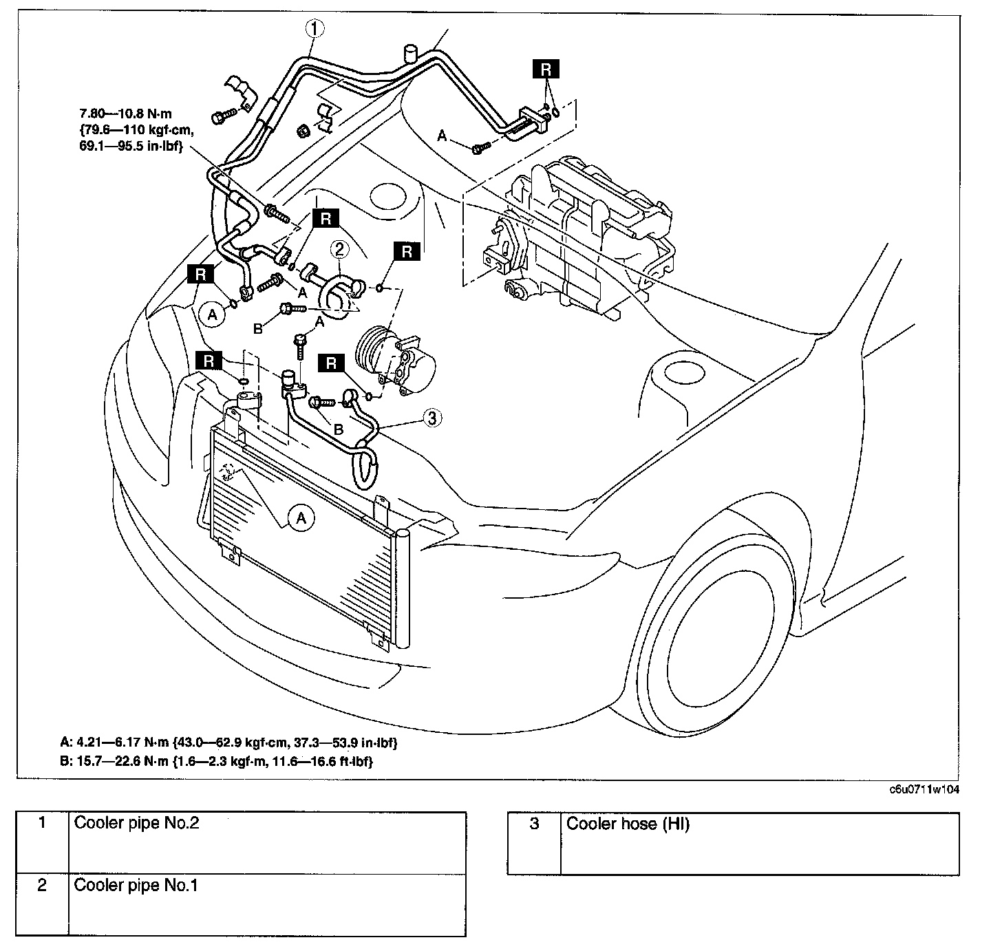 6. Remove in the order indicated in the table. Do not allow compressor oil to spill.