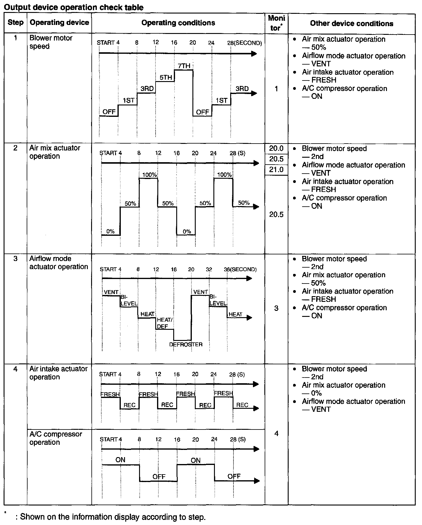 6. Verify the operation of each output device when changing steps by pressing the REC/FRESH switch, and referring to the output device operation check chart.