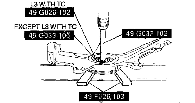 ^ Performing the following procedures without first removing the ABS wheel-speed sensor may possibly cause an open circuit in the harness if it is pulled by mistake. Before performing the following procedures, remove the ABS wheel-speed sensor (axle side) and fix it to an appropriate place where the sensor will not be pulled by mistake while the vehicle is being serviced.