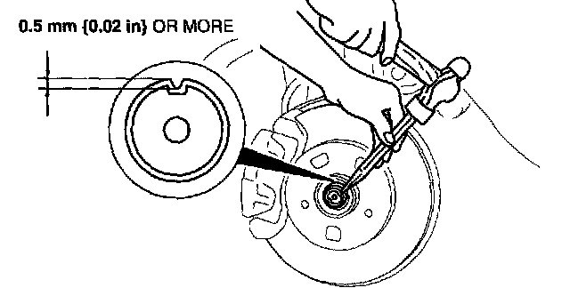 2. If the bearing inner race remains on the front wheel hub component, grind a section of the bearing inner race until approximately 0.5 mm (0.02 inch) remains. Then remove it using a chisel.