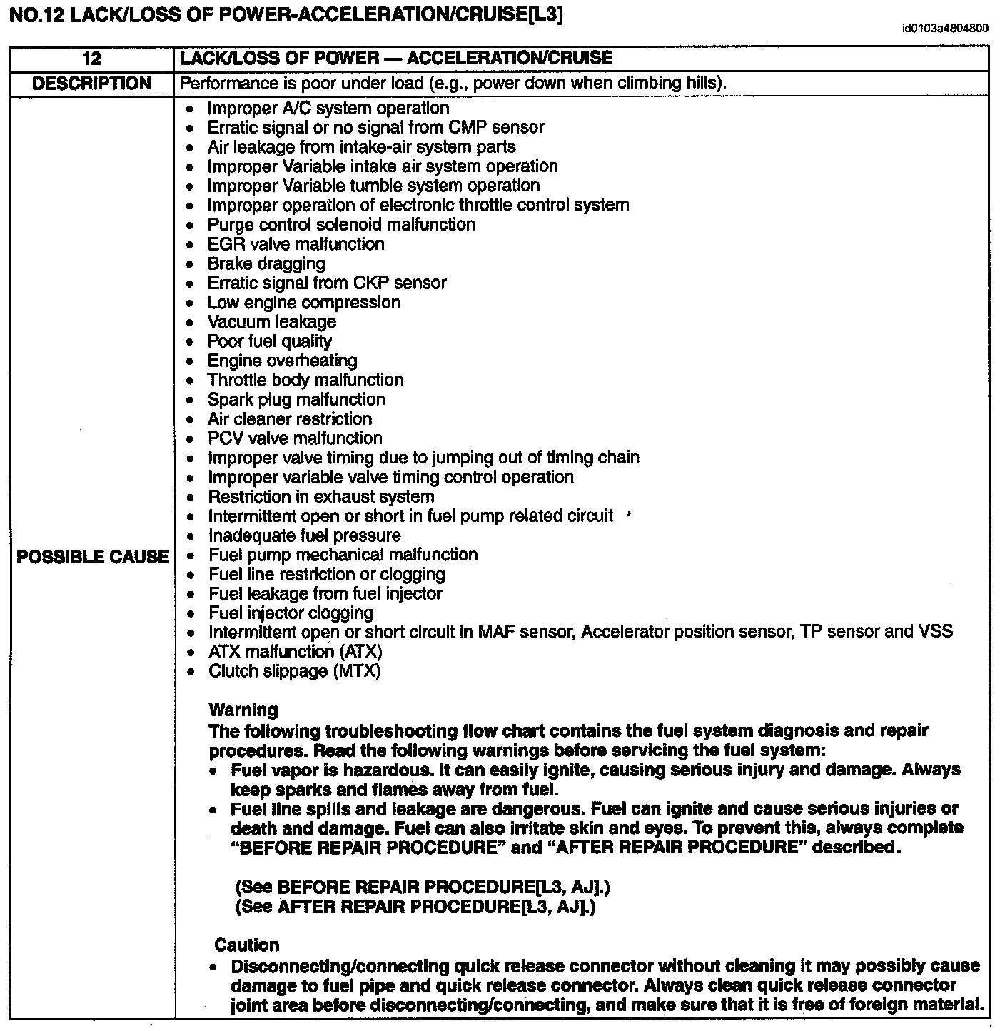 No.12 Lack/Loss Of Power-Acceleration/Cruise