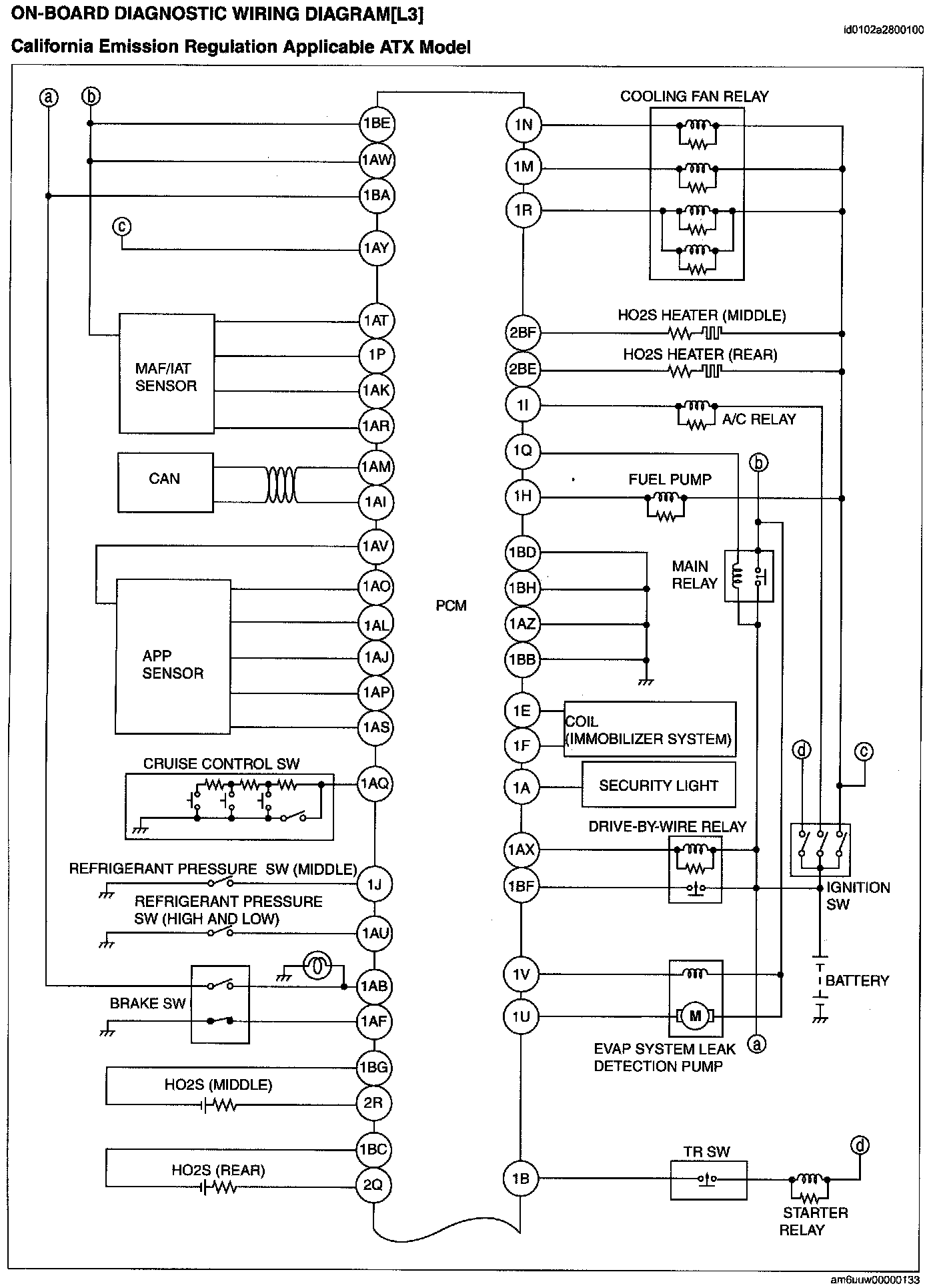 On-Board Diagnostic Wiring Diagram[L3]-Except For California Emission Regulation Applicable ATX Model: