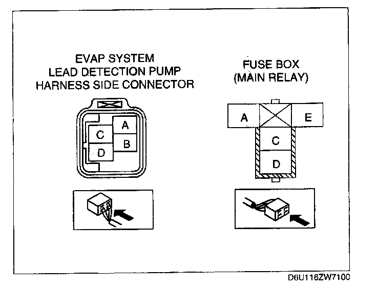 - EVAP system leak detection pump terminal A and main relay terminal C