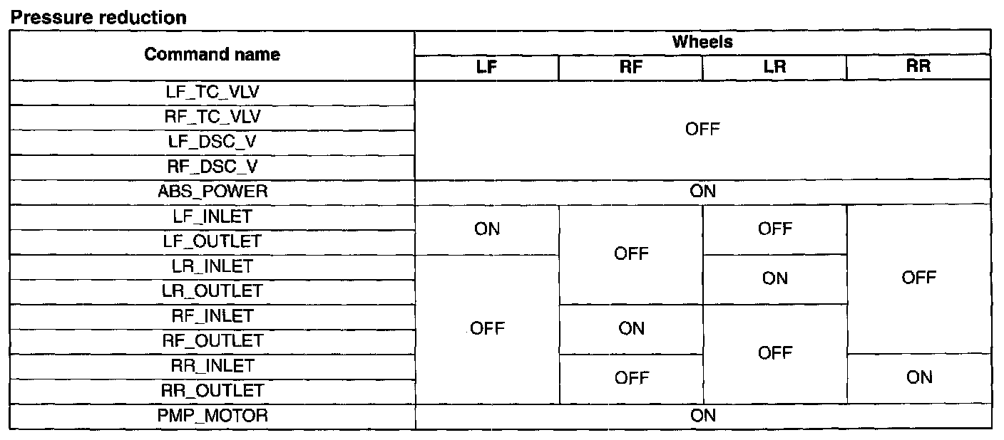 ^ To protect the DSC HU/CM, the solenoid valve used for simulations and the ABS motor stay on for 10 s each time they are switched on.