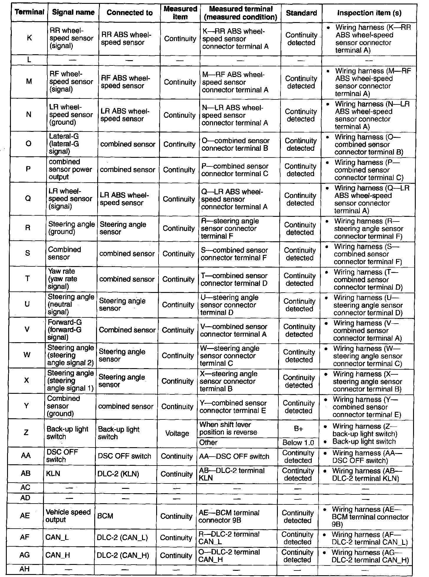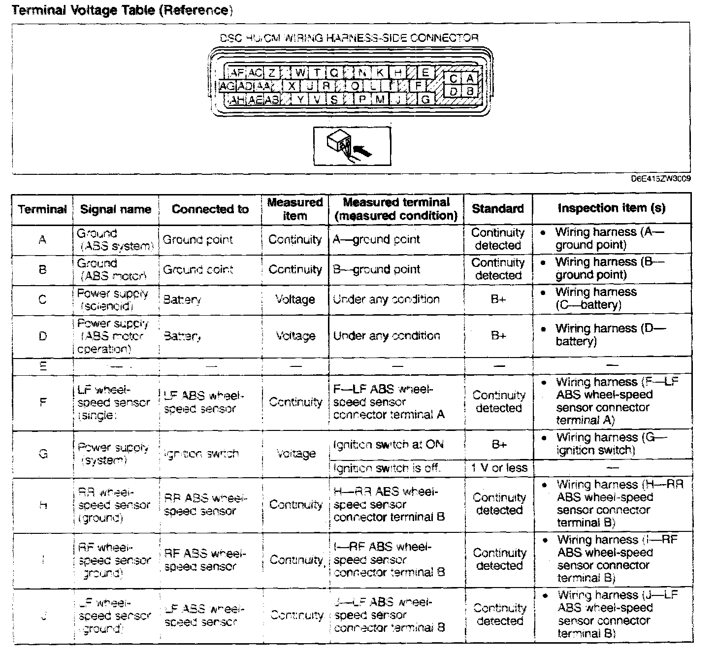 DSC HU/CM INSPECTIONTerminal Voltage Table (Reference) (part 1):