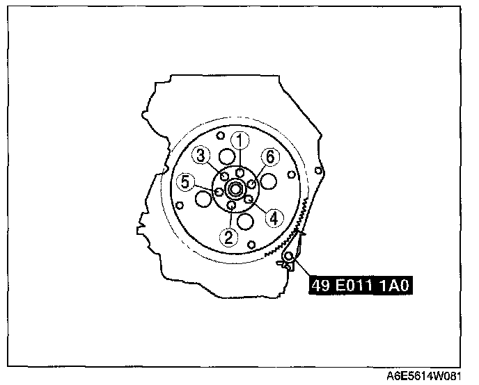 Tighten the new drive plate mounting bolts in two or three steps in the order shown.