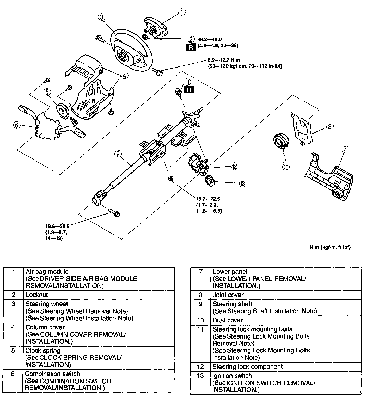 STEERING WHEEL AND COLUMN REMOVAL/INSTALLATIONWarning: