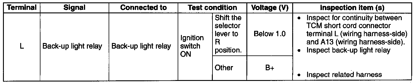 2. Verify that the back-up lights illuminate when shifted to R position with the ignition switch at the ON position.