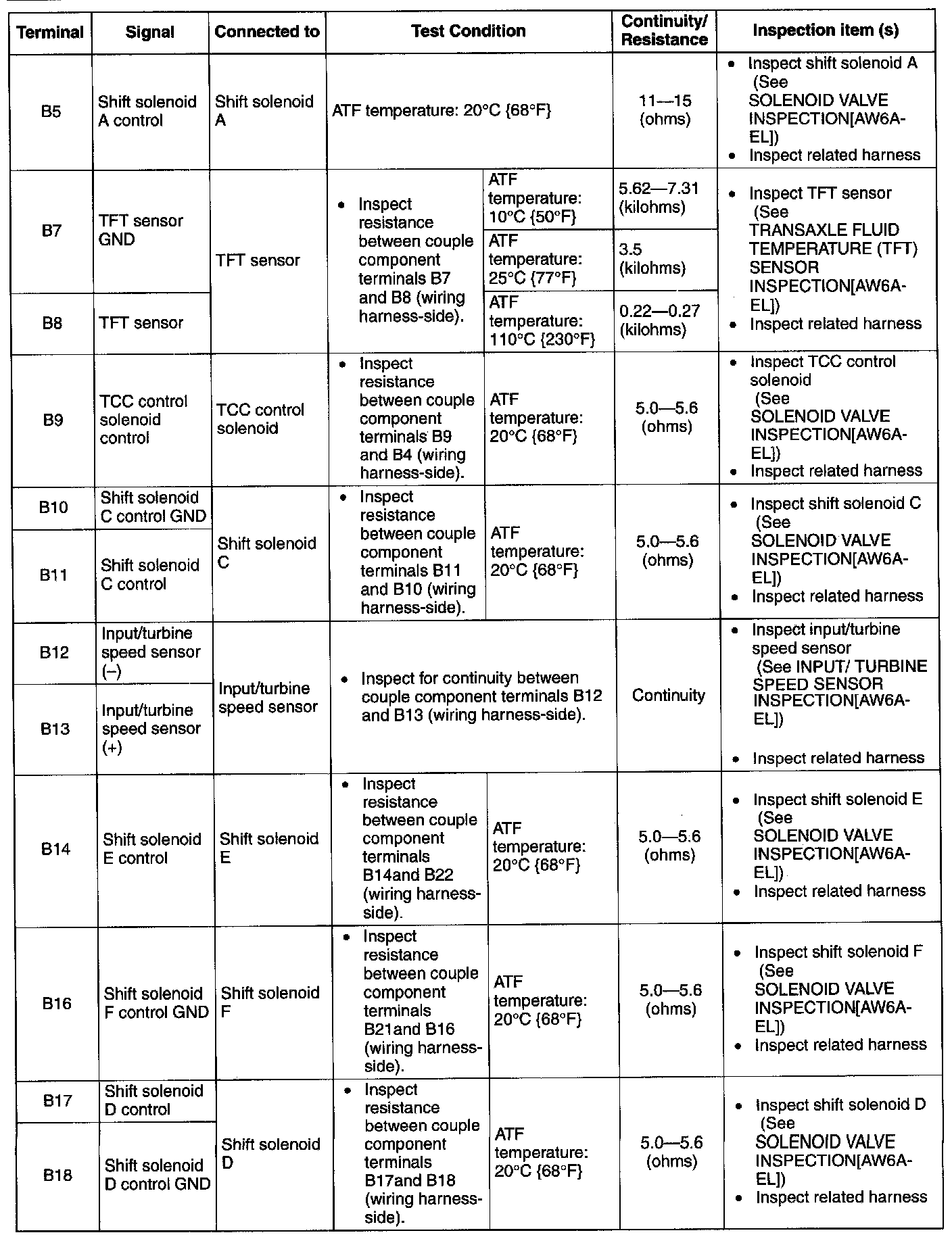 4. Verify that continuity or resistance at terminal is as indicated in the terminal continuity/resistance table.
