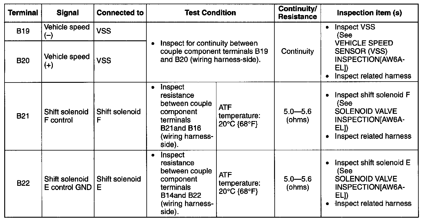 ^ If the voltage is not as specified in the Terminal Voltage Table (Reference), inspect the parts under "Inspection item (s)".