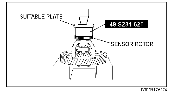 1) Press the new bearing (sensor rotor side) onto the gear case using the SST.
