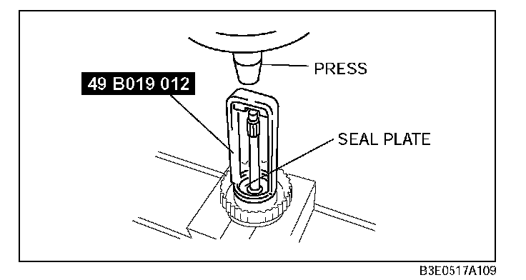 Caution: Depress the seal plate only enough to remove the snap ring. Overpressing will damage the seal plate assembly edges.