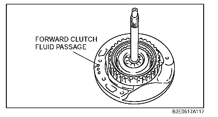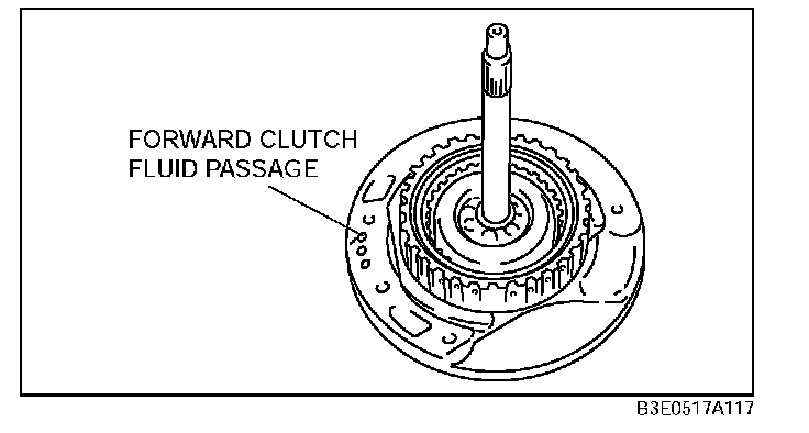 2) Inspect the forward clutch operation by applying compressed air as shown.