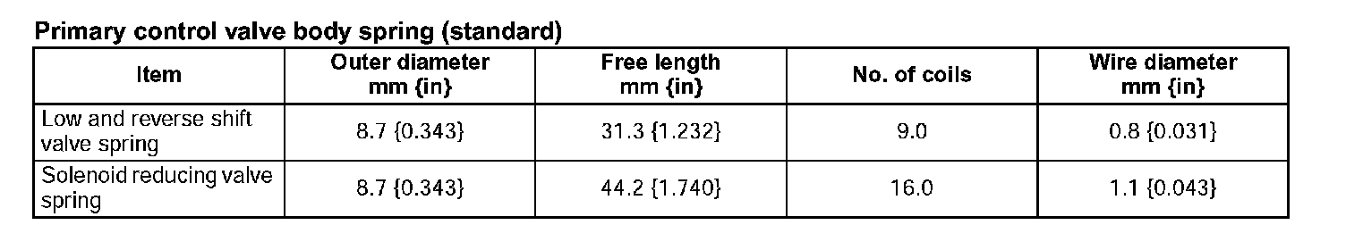 Primary control valve body spring (standard)