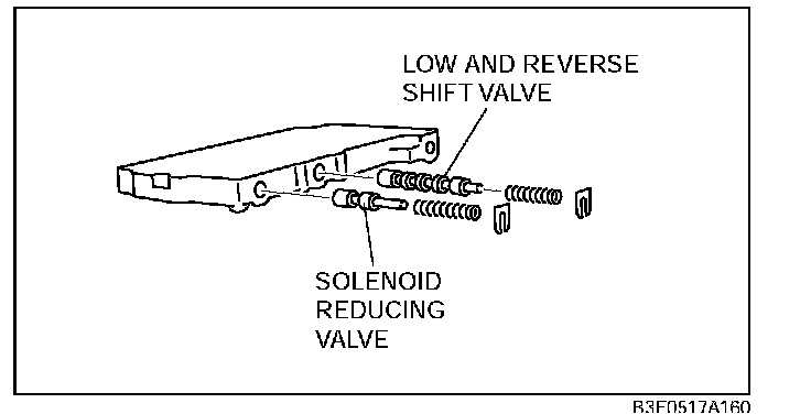 2. Install the solenoid reducing valve, solenoid reducing valve spring and retainer.