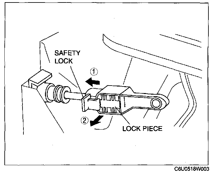 3. Unlock the lock piece of the selector cable (selector lever side) in the order shown in the figure.