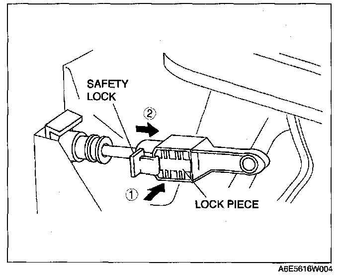5. Lock the lock piece of the selector cable (selector lever side) in the order shown in the figure.