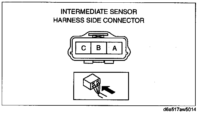 3. Measure voltage at intermediate sensor connector terminal B (wiring harness side).