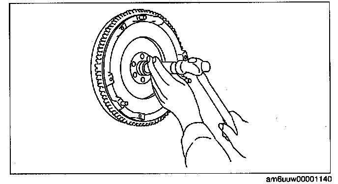 1. Hold the flywheel using the SST.