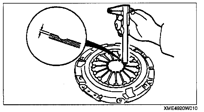 CLUTCH COVER INSPECTION [G35M-R, A65M-R]1. Measure the wear of the diaphragm spring fingers.