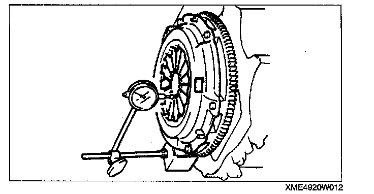 3. When checking the diaphragm spring fingers, mount a dial indicator on the cylinder block.