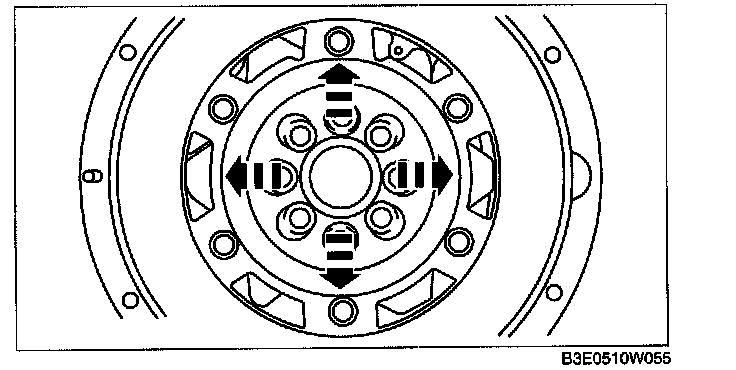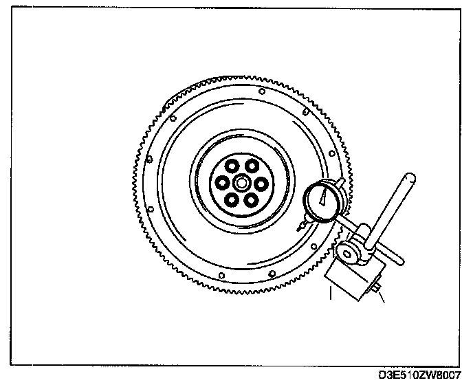 ^ Inspect the runout of the surface that contacts the clutch disc with the flywheel installed to the crankshaft.